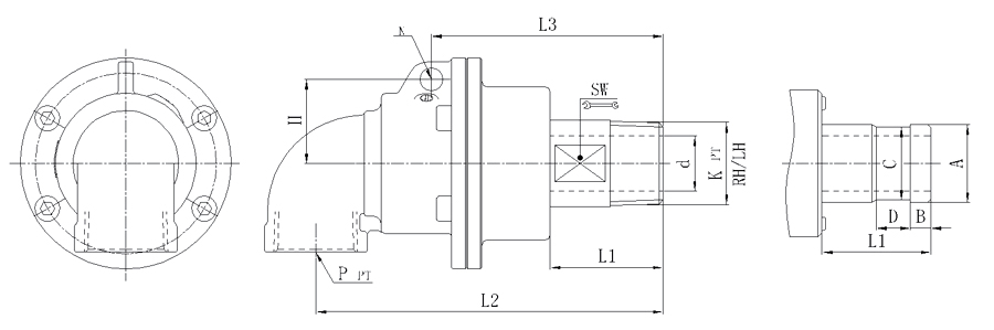 Model K P d L1 L2 L3 N SW H 法兰式外管尺寸对照表