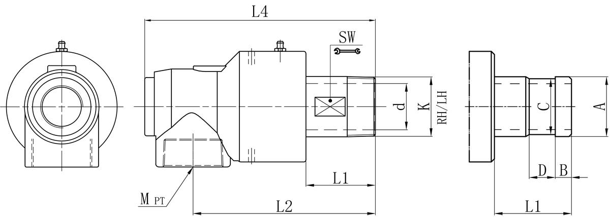 Model K I d L1 L2 L4 SW 法兰式外管尺寸对照表