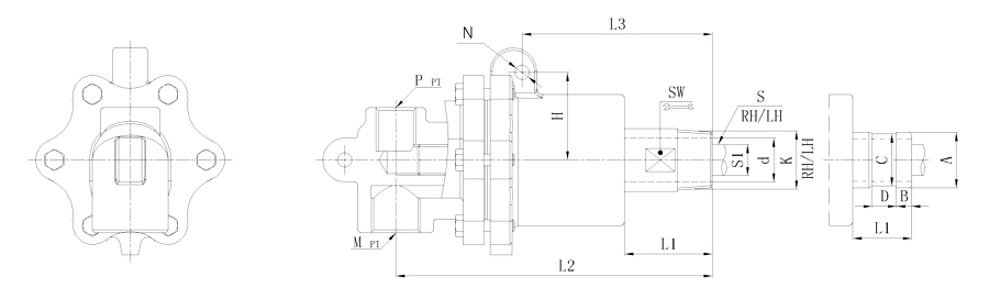 Model K M P S d L1 L2 L3 N SW H 法兰式外管尺寸对照表